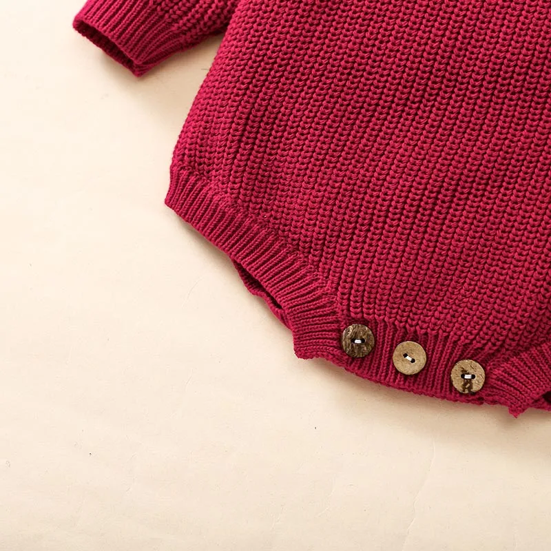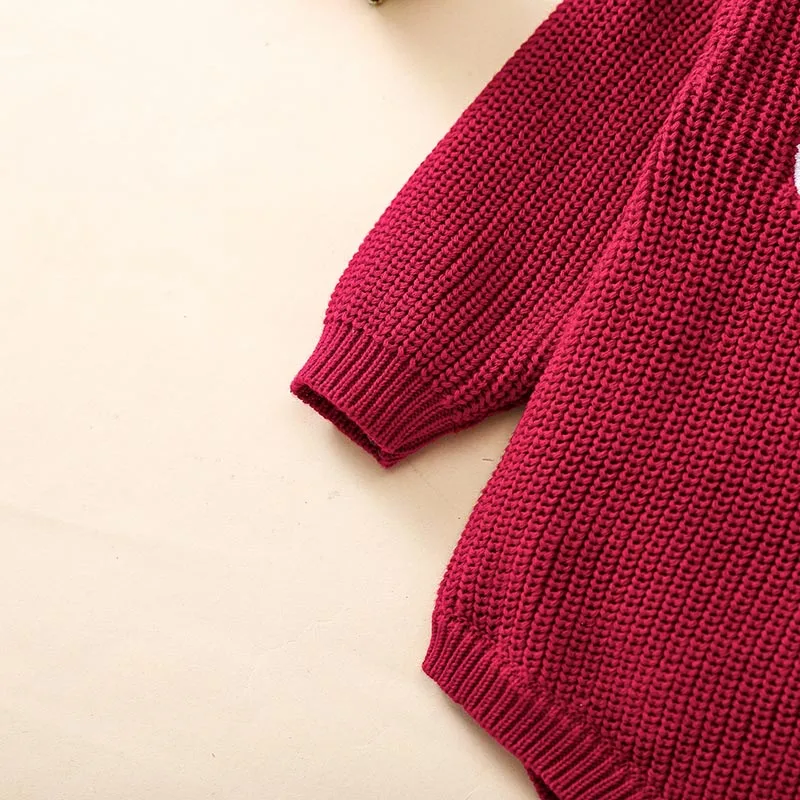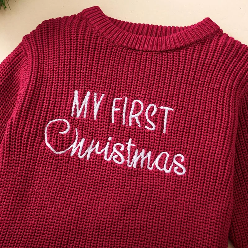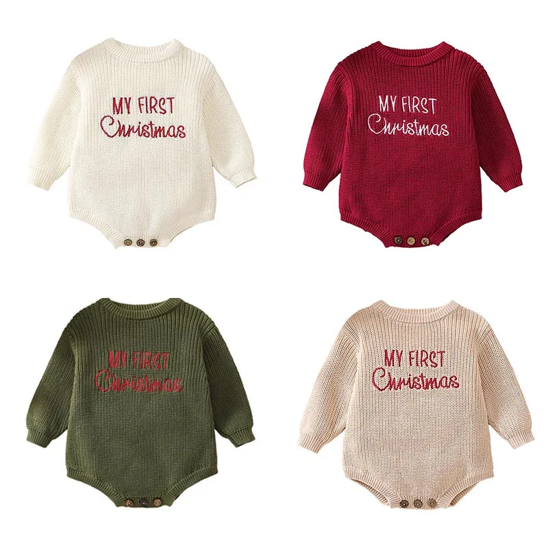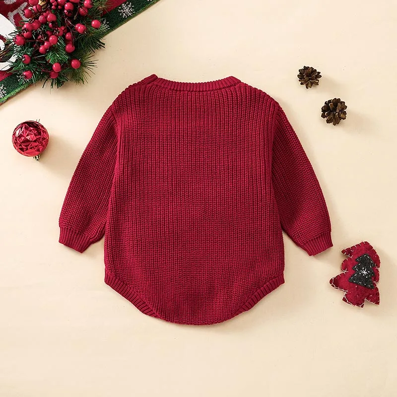 Baby Christmas Sweater Romper Letter Embroidery Long Sleeve Crew Neck Knit Bubble Jumpsuit