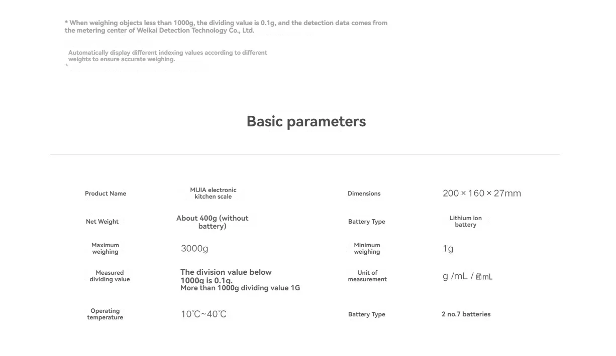 Model Number: Xiaomi Mijia Electronic Kitchen Scale